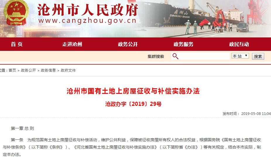 沧州市住房和城乡建设局为市级房屋征收部门。